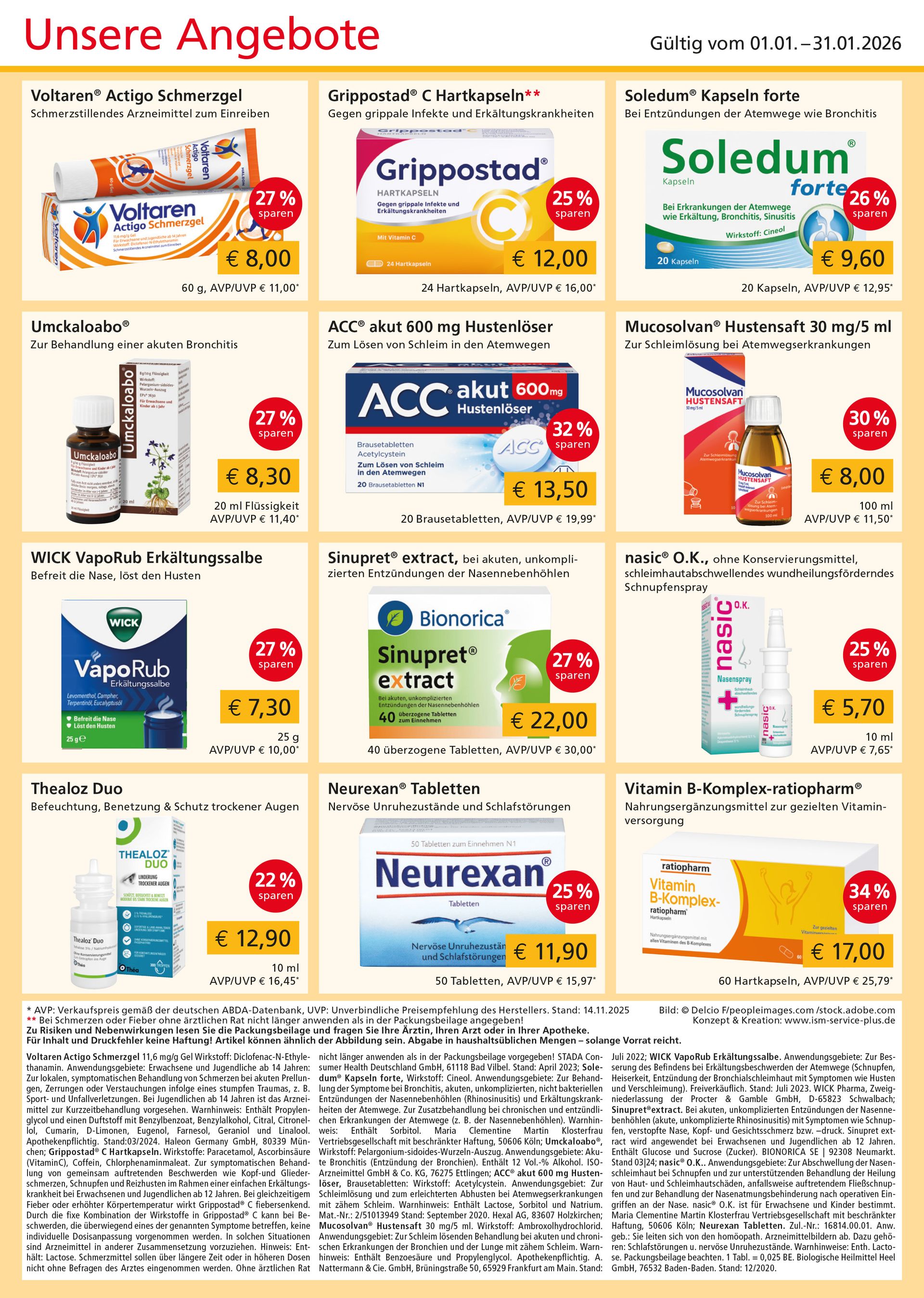 Entdecken Sie unseren Online-Shop, der rund um die Uhr für Sie geöffnet ist. Hier finden Sie eine breit gefächerte Palette an Arzneimitteln für Ihre Hausapotheke, Nahrungsergänzungsmitteln und Hautpflegeprodukten vor. Unser diskreter Botendienst liefert in Bad Windsheim im Umkreis von 15 Kilometern für Sie kostenlos. Ebenso ist eine Abholung vor Ort in unserer Apotheke möglich. Wir kontaktieren Sie, sobald Ihre Bestellung abholbereit ist. Sie können auch bequem per App bestellen: IhreApotheken.de » oder ZACK + DA! » sowie via E-Mail, Telefon und Fax.
